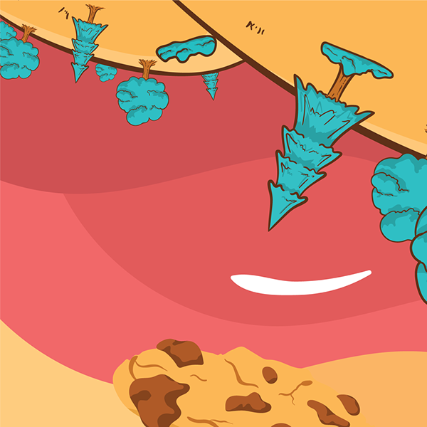 We use hand-drawn illustrations that are vectorized, featuring warm and crunchy tones within a whimsical dessert-world theme — reflecting the idea that the flavor comes from a world beyond the ordinary.